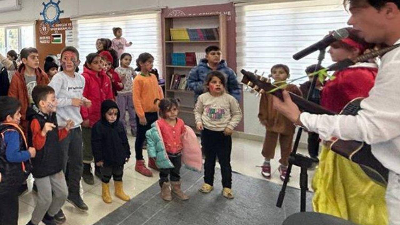 Çevre, Şehircilik ve İklim Değişikliği Bakanlığı tarafından yarıyıl tatilinde düzenlenen moral etkinlikleriyle afetzede çocuklar, tatilin keyfini çıkarıyor.ANKARA (İGFA) - Çevre, Şehircilik ve İklim Değişikliği Bakanlığı Eğitim ve Yayın Dairesi Başkanlığı tarafından 2023-2024 eğitim öğretim yılı yarıyıl tatilinde, 6 Şubat depremlerinin yaşandığı bölgede düzenlenen moral etkinlikleriyle bir yandan çocuklar eğlenceli vakit geçirirken diğer yandan da atölye çalışmalarıyla çevre bilinci ve geri dönüşümün önemini eğlenerek öğrenmeleri sağlanıyor.