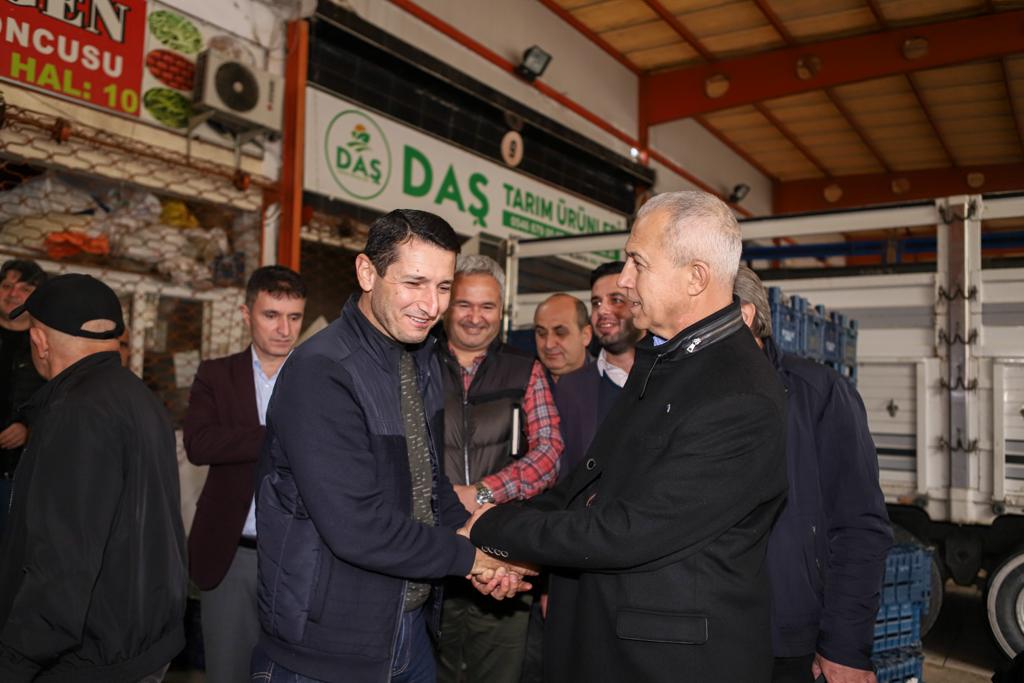 Daha sonra, CHP Alanya Belediye Başkan Adayı Osman Tarık Özçelik, beraberinde heyet, Hal Derneği Başkanı Kaya ile birlikte Toptancı Halinde faaliyet gösteren tüm esnafı tek tek ziyaret ederek görüşlerini dinledi. Özçelik, yaptığı değerlendirmede “Toptancı Hali Büyükşehir Belediyemizin sorumluluk sahasında. Ancak, biz esnafımız ile Büyükşehir Belediyemiz arasında yapıcı bir aracılık rolü oynayacağız ve esnafımızın yanında yer alacağız” dedi.