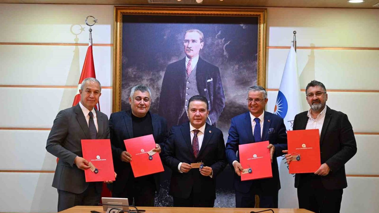 Başkan Muhittin Böcek, 4 ilçede uygulanacak proje için Alanya Belediye Başkanı Osman Tarık Özçelik, Serik Belediye Başkanı Dr. Kadir Kumbul, Aksu Belediye Başkanı İsa Yıldırım ve Kemer Belediye Başkanı Necati Topaloğlu ile bir protokol imzaladı.