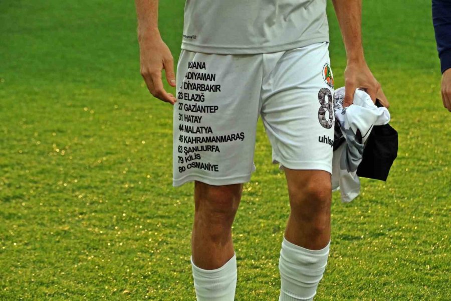 Her iki takım oyuncuları depremzede çocuklarla birlikte, "Türk Milleti Yaralarımızı Birlikte Saracağız" yazılı pankartla sahaya çıktı. Alanyaspor formalarında ise yine depremde etkilenen 11 ilin ismi yer aldı.