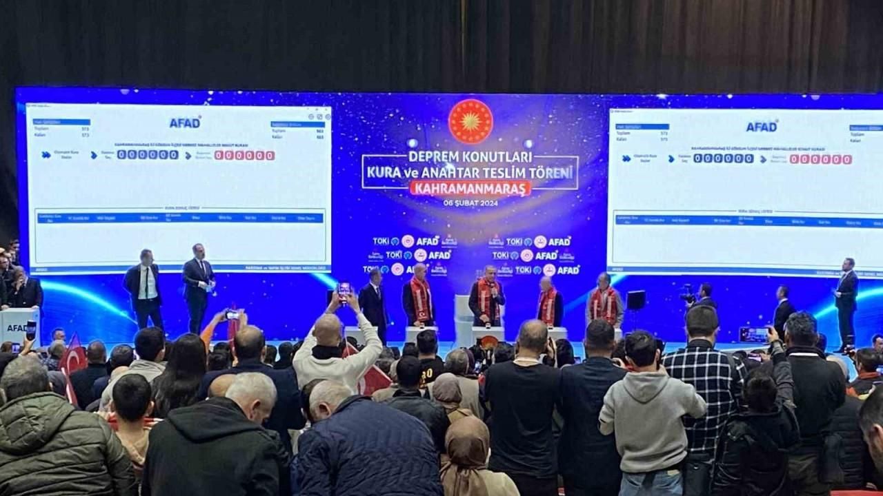 Erdoğan, Kahramanmaraş Deprem Konutları Kura ve Anahtar Teslim Töreninde yaptığı konuşmada, “Cumhur ittifakı söz verir ve yapar. 1 yıl önce büyük bir felaket yaşadık. Türkiye 6 Şubat gününe büyük bir felaket ile uyandı. 7.7 büyüklüğünde ve 7.6 büyüklüğünde 2 deprem ve şiddeti onlara yakın binlerce artçı saldırı ile dünyamız başımıza yıkıldı. Bu depremler gerek büyüklüğü, gerek yüzeye yakınlığı bakımından asrın felaketi olarak kayıtlara geçmiştir. Yıkılan binalarının yüzde 90’dan fazlasının 1999 öncesi yapılmış olması felaketin büyüklüğünü daha da arttırmıştır. Ölenlere Allah’tan rahmet diliyorum. Depremden kaybettiğimiz kardeşlerimizin aziz hatıralarını inşallah hep yaşatacağız. Rabbimden bu gece idrak edeceğimiz Miraç gecesinde rabbimden ölenler adına af diliyorum. Milletleri yapan millet yapan özelliklerinden biride sevinçleri paylaşarak çoğalttıkları gibi üzüntüde tek yürek olup acıları dayanılır kılmalarıdır. Hem birey hem de toplum olarak bizlere en çok toplum olarak böyle zamanlarda lazımdır. Asrın felaketinin ardından asrın dayanışmasıyla kalkmayı başardık. 7 bin mahalle ve köyünde ağır yıkıma yol açan bizim kadar güçlü durabilecek pek az ülke ve toplum vardır. Benzer felaketler karşısında en gelişmiş ülkelerin bile çaresiz kaldığını gördük. Biz depremin birinci yıl dönümünde enkazları kaldırmış, insanları yeniden hayata tutunmuş bir tabloya kavuşturduk” diye konuştu.