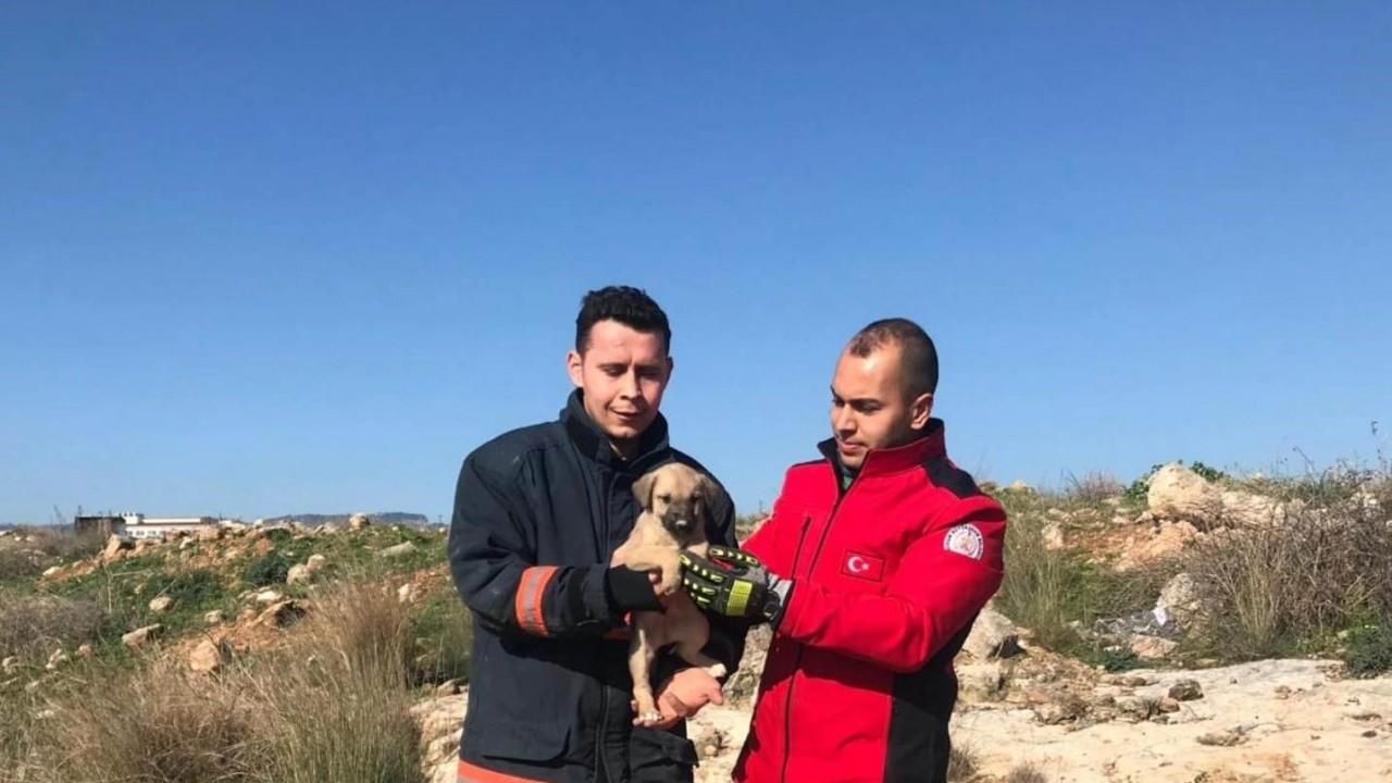 Mersin’de kaya mezarların olduğu bölgede define aramak için kaçak kazı yapan kişilerin açtığı kuyuya düşen yavru köpek, itfaiye ekiplerince kurtarıldı.