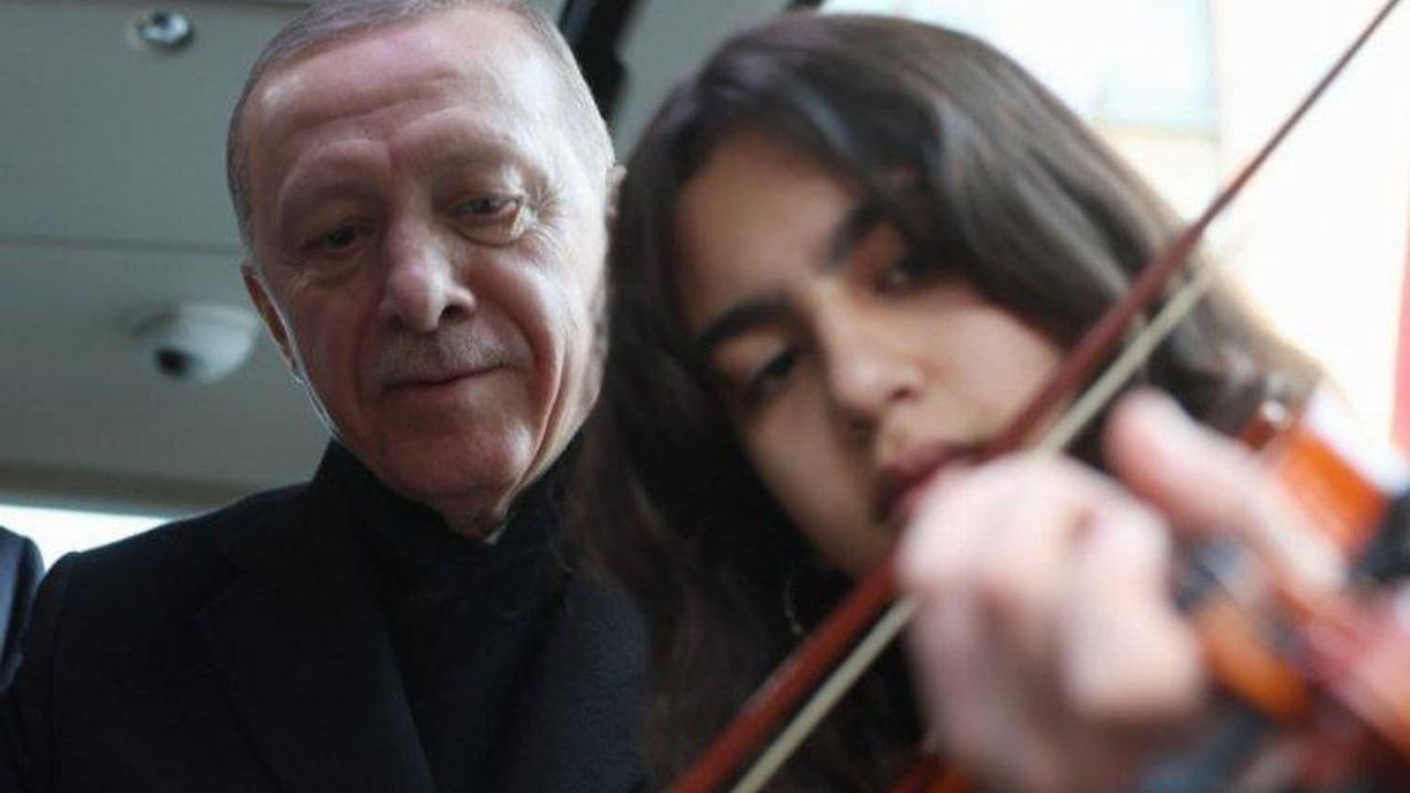 Cumhurbaşkanı Erdoğan, Denizli programı esnasında, Cumhurbaşkanlığı otobüsünde, keman çalan konservatuar öğrencisiyle sohbet etti, öğrenciden eğitim ve aile durumuna ilişkin bilgi aldı.