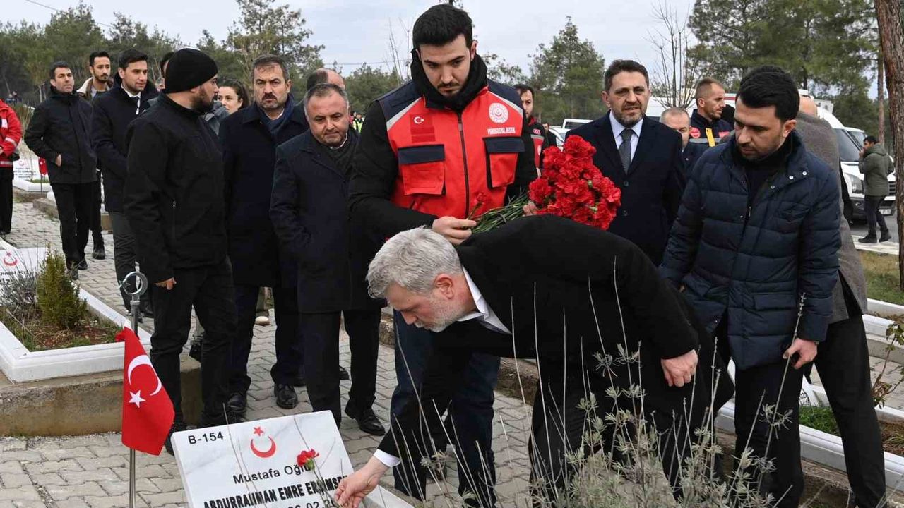 Kahramanmaraş'ta depremin üçüncü yılında hayatlarını kaybedenler, kent protokolünün katılımı ile mezarları başında dualarla anıldı.