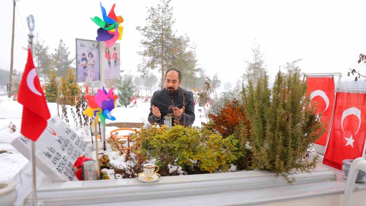Yaşadığı acıyı anlatan Emre Bozkurt, '6 Şubat depremlerinde eşimi ve iki evladımı kaybettim. Geriye onarılan kabirleri kaldı. Üç yıl oldu ama zaman nasıl geçiyor, inan bugün bile anlamak mümkün değil. Her gün, her saniye zaten bana 6 Şubat. Kaybettiğim gün ne hissettiysem bugün de aynı acıyı taşıyorum. Sevgi adres değiştirdi. Kızım Arya Beren 5,5 yaşındaydı, anaokuluna gidiyordu. Egemen 3,5 yaşındaydı, o da okula başlayacaktı ama nasip olmadı. Hepimizin hayali, umudu vardı, o küçücük yavruların bile umutları vardı. Son gün kar topu oynamıştık. Bugün kabirlerine geldim, üzerlerini örten karı temizliyorum. Beyaz örtü her şeyi saklayabilir ama benim yitirdiklerimi asla saklayamaz. O günden bugüne her gün buradayım. Eşim kahveyi çok severdi, bugün ona kahve yapıyorum bu benim ona selamım, 'buradayım, sizi bırakmadım' demek' diye konuştu.