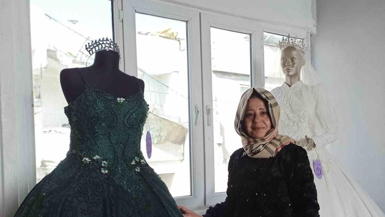 Kahramanmaraş’ta 3 çocuk annesi kadın, mikrokredi desteği ile evinin çatısında kurduğu iş yerinde gelinlik ve abiye satışı yaparak geçimini sağlıyor.