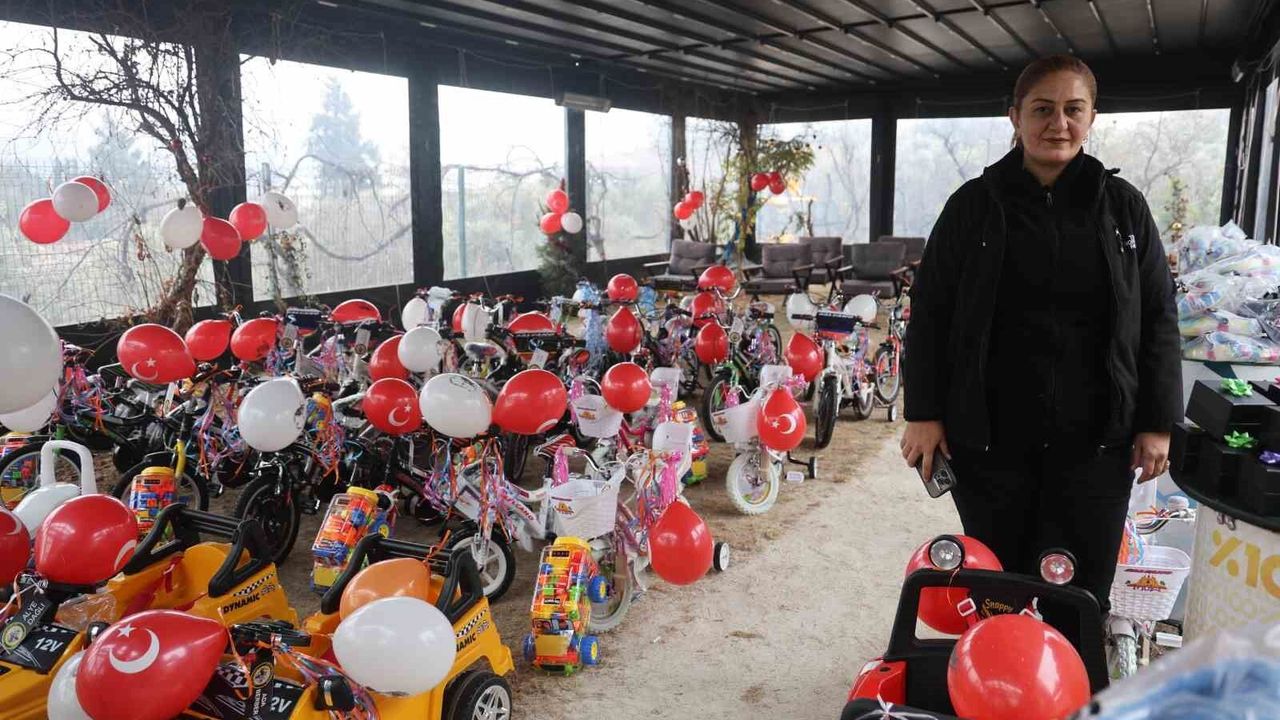 Hatay'da yaşayan 200 öksüz ve yetim depremzede çocuğa hayırseverler tarafından akülü araba, bisiklet, akıllı saat başta olmak üzere çeşitli hediyeler dağıtıldı.