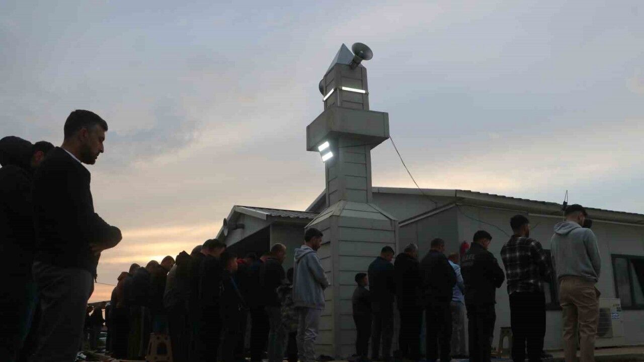 Kahramanmaraş merkezli depremlerde Hatay’da 25 bin insan vefat etmiş, binlerce konut yerle bir olmuştu. Asrın felaketinin üzerinden geçen 14 ay geçmesine rağmen depremin etkisi Hatay’da hissedilmeye devam ediyor. Depremzede vatandaşlar, sabahın erken saatlerinden itibaren konteyner ve betonerme camileri doldurmaya başladılar. Antakya ilçesi Aladdin Mahallesi’nde bulunan konteyner camide de cemaat caminin dışına taştı. Konteyner camide, vatandaşlar bayrama ulaşmanın mutluluğunu yaşadıklarını söylediler.