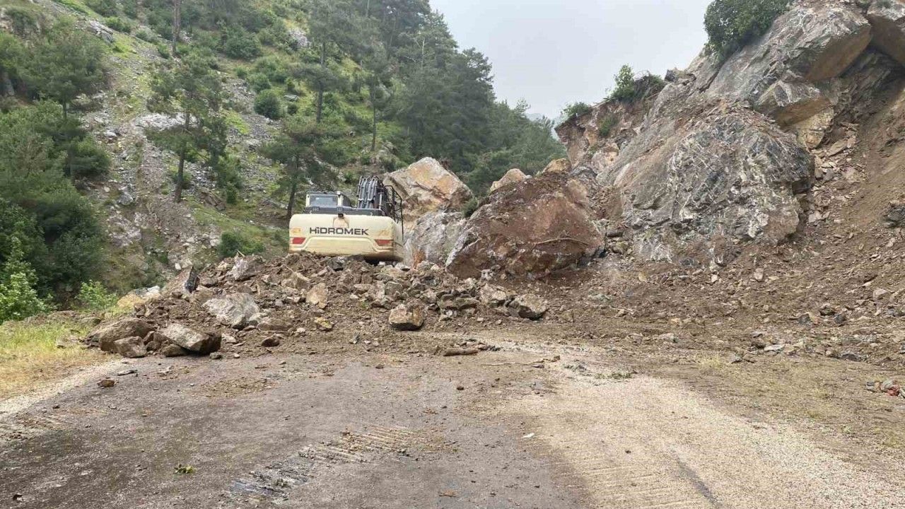 Osmaniye’nin Düziçi ilçesinde dev kayaların düşmesi sonucu 3 köyün yolu ulaşıma kapandı.
