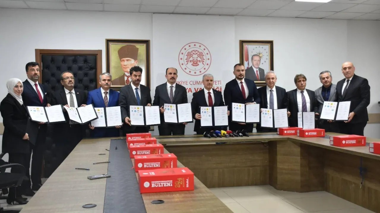 Konya Valisi İbrahim Akın başkanlığında gerçekleştirilen protokol imza törenine, Konya Büyükşehir Belediye Başkanı Uğur İbrahim Altay, Selçuk Üniversitesi Rektörü Prof.Dr. Hüseyin Yılmaz, KTO-Karatay Üniversitesi Rektörü Prof.Dr.Fevzi Rifat Ortaç, Necmettin Erbakan Üniversitesi Rektör Vekili Prof.Dr. Hidayet Oğuz, Konya Gıda ve Tarım Üniversitesi Rektörü Prof. Dr. Erol Turan, Konya Teknik Üniversitesi Rektörü Prof. Dr. Osman Nuri Çelik, Cumhurbaşkanlığı İletişim Başkanlığı Konya Bölge Müdürü Oğuz Tunç, Anadolu Ajansı Konya Bölge Müdürü Rıfat Yerlikaya, Konya Gençlik ve Spor İl Müdürü Birdal Öztürk, Konya İl Millî Eğitim Müdürü Murat Yiğit ve Cumhurbaşkanlığı İletişim Başkanlığı Dezenformasyonla Mücadele Merkezi Uzmanı Ümmühan Yücel katıldı.