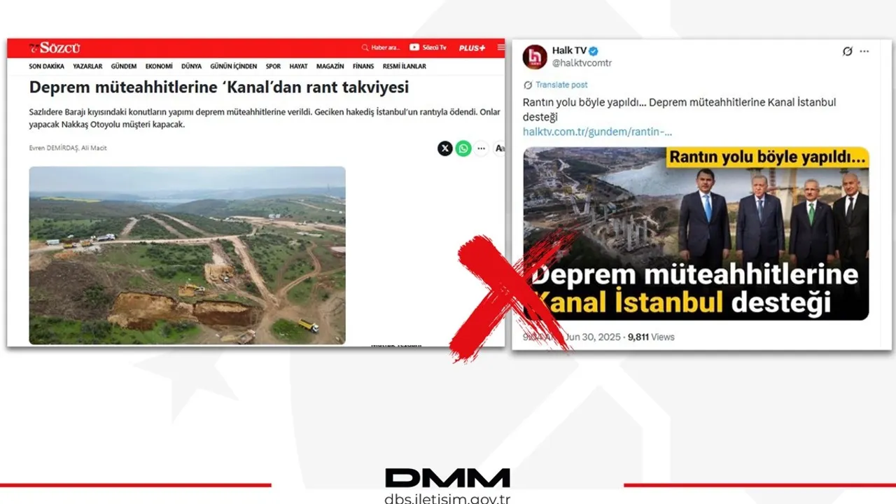 İletişim Başkanlığ Dezenformasyonla Mücadele Merkezi, bazı basın organlarında yer alan “Kanal İstanbul güzergahında lüks konut inşa edileceği” iddialarını yalanlayarak, projenin TOKİ’nin dar gelirli vatandaşlar için yürüttüğü sosyal konut çalışması olduğunu açıkladı.ANKARA (İGFA) - Dezenformasyonla Mücadele Merkezi, bazı basın yayın organlarında yer alan “Cumhurbaşkanı Recep Tayyip Erdoğan’ın Nakkaş Otoyolu ziyaretinin ardından Kanal İstanbul güzergahında bölgenin imara açıldığı ve lüks konut inşa edileceği” iddialarını kesin bir dille yalanladı.