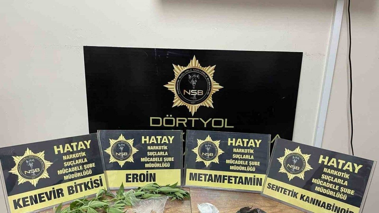 Hatay Emniyet Müdürlüğü görevlilerince uyuşturucu imal ve ticaretine yönelik yürütülen çalışmada Dörtyol ilçesinde H.Ç. isimli şahsın Numune Evler Mahallesi’ndeki ikametinde arama gerçekleştirdi. Yapılan aramada 7,13 gram metamfetamin, 2 parça halinde toplam 58,56 gram sentetik kannabinoid, 1,70 gram eroin ve boyları 20 ile 75 santimetre arasında değişen 3 kök kenevir ele geçirildi.