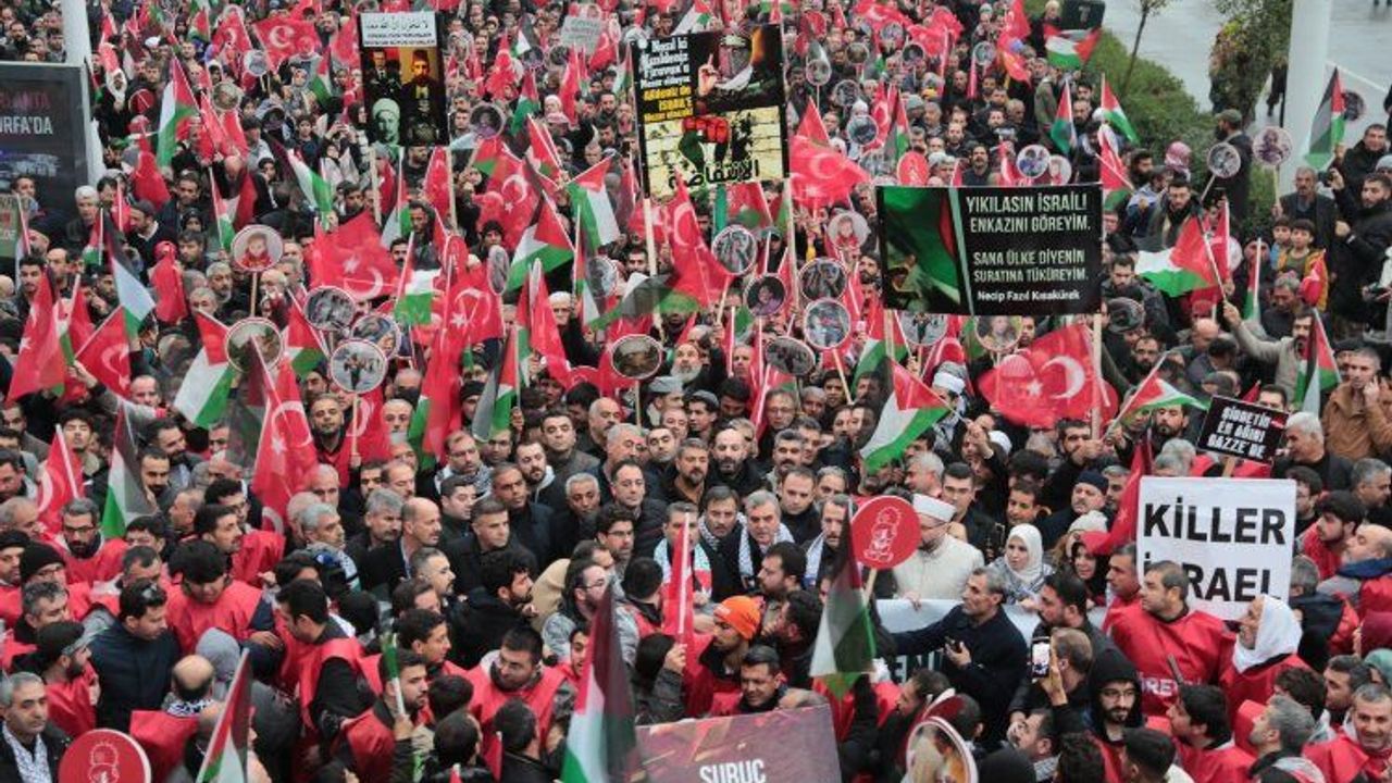 Şanlıurfa’da Filistin’e Destek Platformu tarafından düzenlenen Filistin’e özgürlük yürüyüşüne binlerce kişi katıldı. Şanlıurfa Büyükşehir Belediye Başkanı Zeynel Abidin Beyazgül, Filistin’de yaşanan insanlık dışı katliamın bir an
