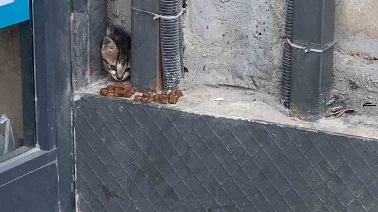 Hatay’ın Samandağ ilçesinde duvarda sıkışarak mahsur kalan yavru kedi, itfaiye ekiplerinin duvarı kırmasıyla kurtarıldı.