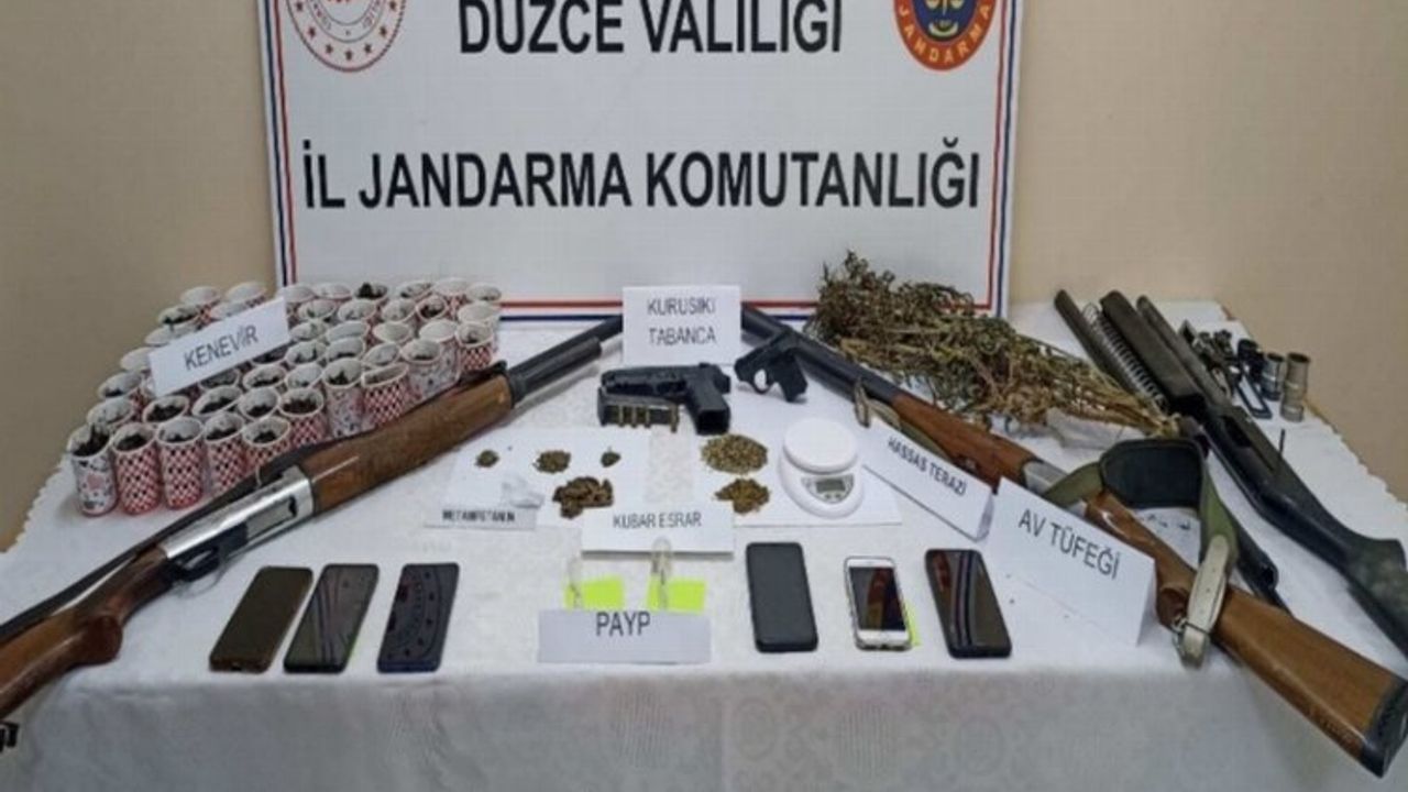 Düzce İl Jandarma Komutanlığı, il genelinde uyuşturucu ile mücadelesini önleyici faaliyetlerle sürdürüyor. Düzce'de son 1 haftada 18 şüpheli gözaltına alındı.DÜZCE (İGFA) - Düzce'de 11-18 Mart tarihlerinde Jandarma Komutanlığı'na bağlı ekiplerin gerçekleştirdiği faaliyetlerde, haklarında uyuşturucu madde kullanma ve bulundurma suçunu işleyen 11 şüpheli ile uyuşturucu imal ve ticareti suçundan 7 şüpheliyi gözaltına aldı. Toplamda 18 şüphelinin gözaltına alındığı bir hafta içerisinde, 140 gr Kubar Esrar, 20 gr Bonzai, 6 gr Metamfetamin, 49 Kök Kenevir, 25 gr Kenevir Tohumu, 15 Adet Extacy, 2 Adet Lyrıca, 1 Adet Hassas Terazi, 3 Adet Av Tüfeği, 2 Adet Kuru Sıkı Tabanca ile 4 Adet Tabanca Mühimmatı ele geçirildi.