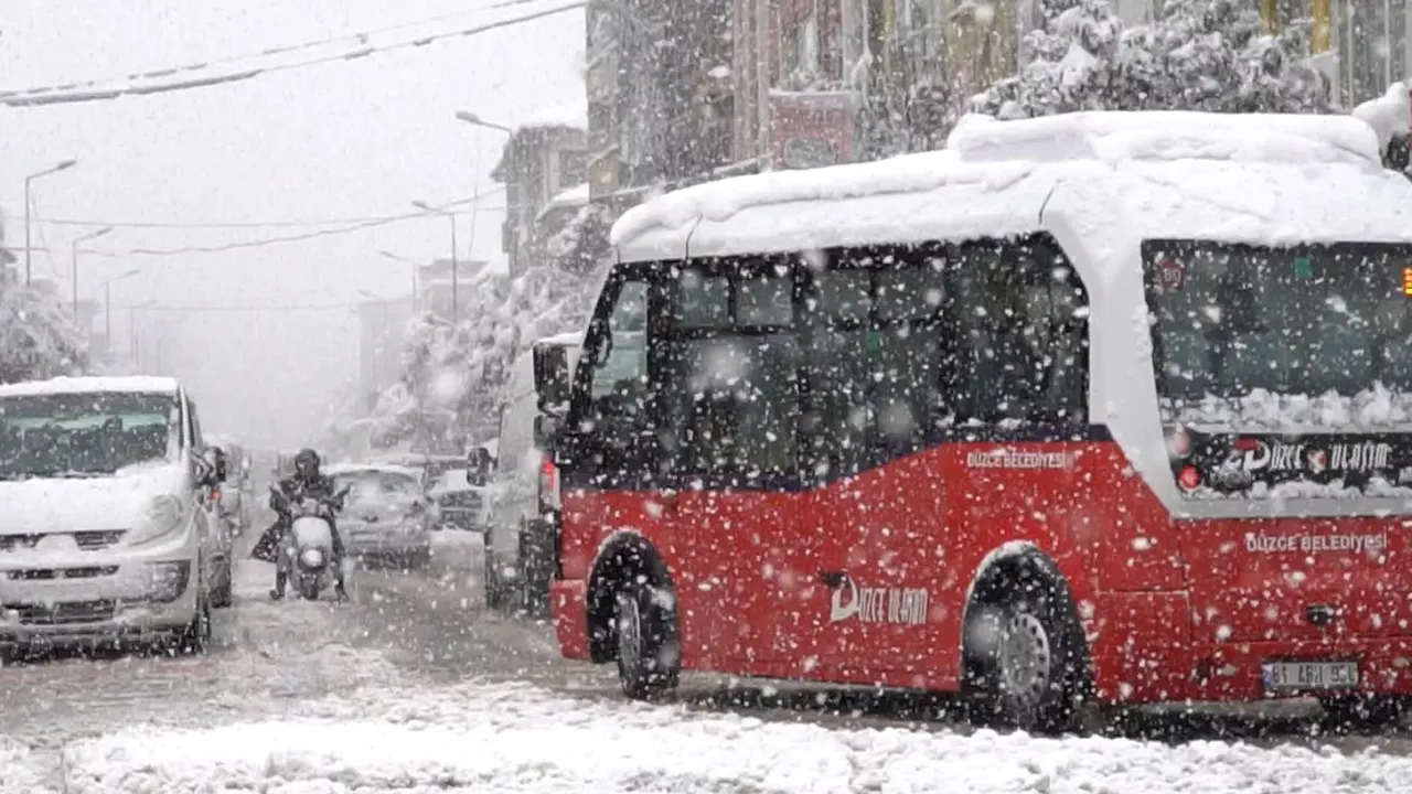 Öte yandan Düzce Belediyesi de, kar lastiği olmayan araçlarla trafiğe çıkılmamasını isterken, toplu taşıma araçlarını tercih etmelerini istedi.