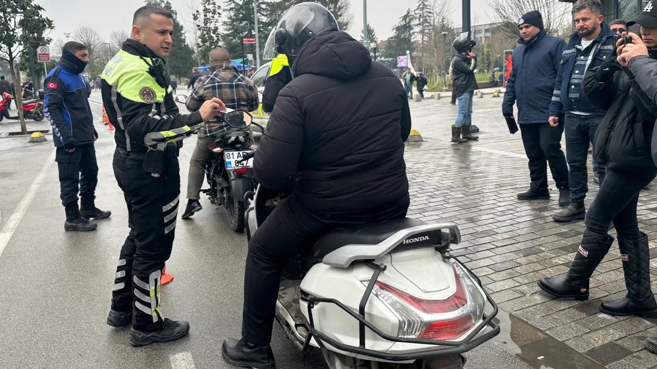 Düzce'de trafiğe kapalı olan İstanbul Caddesi üzerinde kural ihlali yapıp bisiklet yolunu kullanan motosiklet sürücülerine denetim yapıldı. 19 motosiklet sürücüsüne cezai işlem uygulandı.Sefer DEMİR / DÜZCE (İGFA) - Düzce Emniyet Müdürlüğü'ne bağlı ekipler tarafından yapılan İstanbul Caddesi'ndeki denetime Belediye Zabıta ekipleri de eşlik etti.