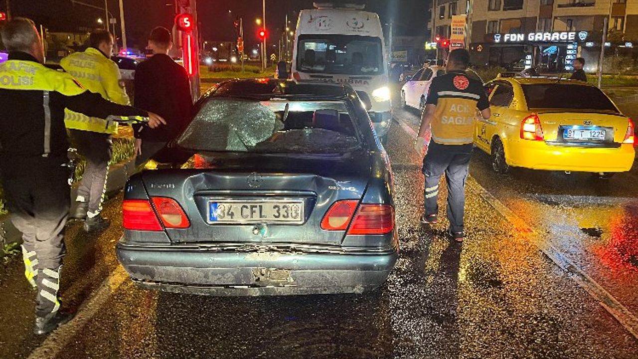 Çarpmanın etkisiyle motosiklet sürücüsü İlhan çarptığı aracın arka camını kırıp içeriye girdi.