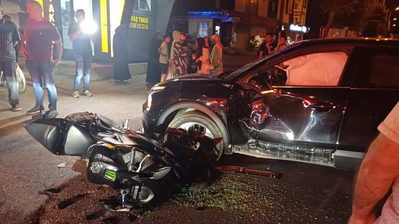 Çarpışmanın şiddetiyle yola savrulan motosiklet sürücüsü Samet T. yaralandı.