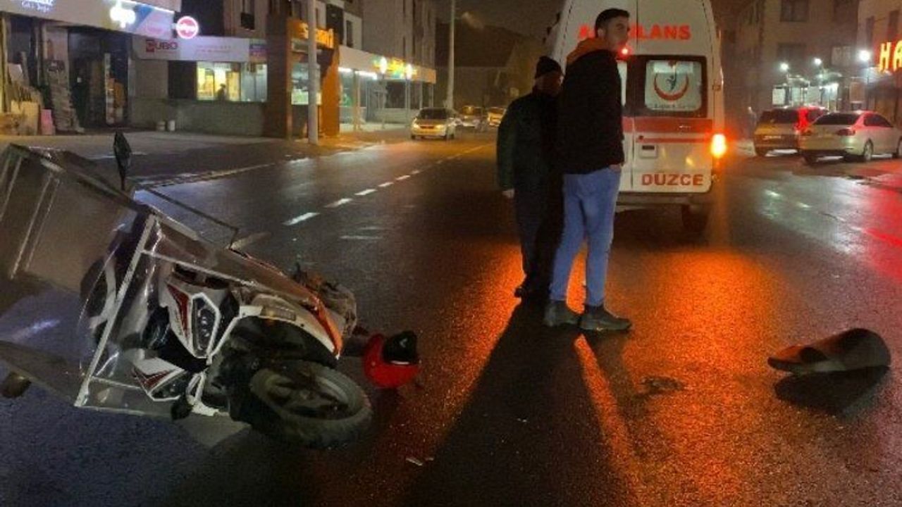 Düzce'de meydana gelen kazada otomobille çarpışan motosiklette sürücü ve yanındaki çocuk yaralandı.Sefer DEMİR / DÜZCE (İGFA) - Düzce'de Körpeşler Mahallesi’nde yan yoldan caddeye çıkan B.Ü. idaresindeki 81 ACM 738 plakalı motosiklet, O.O.K. yönetimindeki 34 FDC 617 plakalı otomobille çarpıştı.