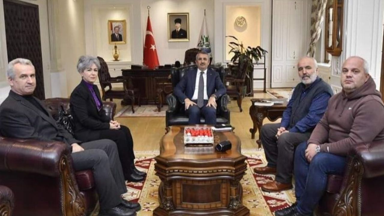 Vali Yunus Sezer’i ziyaret eden dernek yönetimi, Edirne yerel basınının sorunlarını illeti.