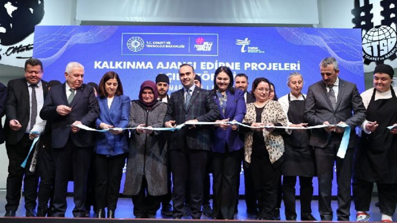 Sanayi ve Teknoloji Bakanı Mehmet Fatih Kacır, Edirne’de Trakya Kalkınma Ajansı eliyle; tarımdan turizme, sanayiden sosyal içermeye kadar yerel kalkınmayı destekleyecek ve Edirne ekonomisine katkı sağlayacak 17 projenin açılışını yaptı.ANKARA (İGFA) - Trakya Kalkınma Ajansı’nın 341 kalkınma projesine 533 milyon lira destek verdiğini belirten Sanayi ve Teknoloji Bakanı Mehmet Fatih Kacır, “Türkiye Yüzyılı’nda Edirne’mizi gerçekleştirdiğimiz projelerle ihya etmeye devam edeceğiz.” dedi.