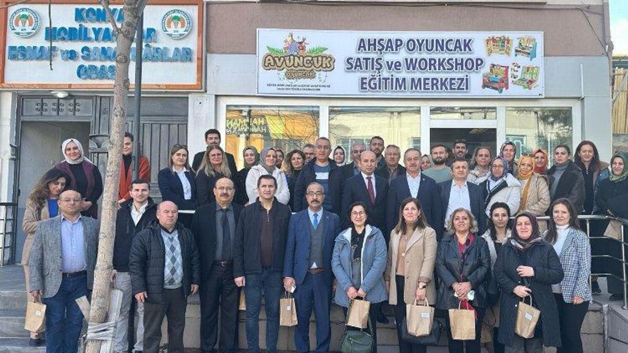 İl Milli Eğitim Müdürlüğüne bağlı ana okulu ve kreşlerde görevli idareci ve öğretmenler, Mobilyacılar Odası öncülüğünde kurulan Avuncuk Ahşap Oyuncak Merkezi’ni ziyaret etti.KONYA (İGFA) - Mobilyacılar Esnaf ve Sanatkârlar Odası Mesleki Eğitim merkezinde üretilen ahşap oyuncakları Meram Milli Eğitim Müdürü Mustafa Koca, İl Şube Müdürü Davut Kaya, Karatay İlçe Şube Müdürü Abdullah Cem Üresin, Meram İlçe Şube Müdürü Ahmet Kocagöz, Selçuklu İlçe Şube Müdürü Mümin Bulut Konya merkezde faaliyette bulunan İl Milli Eğitim Müdürlüğüne bağlı ana okulu ve kreşlerde görevli yaklaşık 150 idareci ve öğretmen, iki gün boyunca Avuncuk Ahşap oyuncak merkezini ziyaret etti.