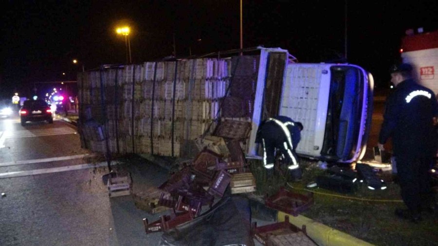 Kaza; Manavgat-Antalya D-400 Karayolunda bu sabaha karşı yaşandı. Edinilen bilgiye göre Manavgat istikametinden Antalya istikametine gitmekte olan Seyfullah Akdemir'in kullandığı 42 AJJ 244 plakalı sebze kasası yüklü kamyona, trafik lambalarını geçtiği sırada, aynı istikamette seyir halindeki Murat Volkan Sevim'in kullandığı 48 FD 990 plakalı otomobil arkadan çarptı. Aşırı hızlı olduğu bildirilen otomobilin çarptığı kamyon çarpmanın şiddetiyle toplama yol ile anayol arasındaki refüje devrilirken otomobil sürücüsü hurdaya dönen ve yanmaya başlayan otomobil içerisinde, kamyon sürücüsü de kamyon ile refüj bordürü arasında sıkıştı. Otomobil sürücüsünün yardımına yoldan geçen diğer araç sürücüleri koşarken, duman çıkmaya başlayan araç yangın tüpüyle söndürüldü.