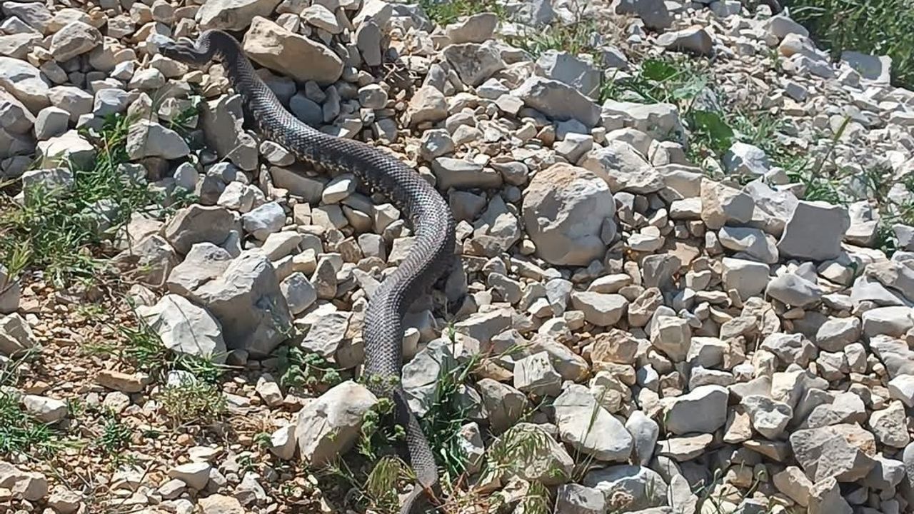 Yılanı görüp çeken Hocaoğlu, "Yürüyüş ve pikniğe gidenler dikkatli olsun" dedi.