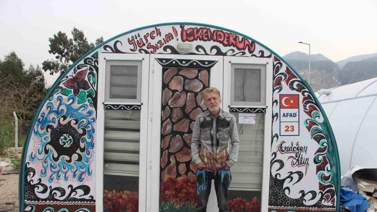 Depremin vurduğu Hatay’da yaşayan Erdoğan Akın, kentte bulunan konteynerleri boyayarak hayatı renklendiriyor.