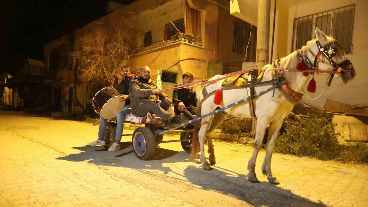 Kahramanmaraş merkezli depremlerde en çok yıkıma uğrayan Hatay’da vatandaşlar, geçtiğimiz yıllarda yaşadıkları Ramazan aylarını özlüyorlar. Ramazan ayını buruk bir şekilde karşılayan kentte, Ramazan davulculuğu geleneği enkaza dönen sokaklarda yaşatılmaya devam ediyor. Bu geleneği devam ettiren 36 yaşındaki Sabit Erdoğan, Antakya ilçesi Narlıca Mahallesi’nde at arabası üzerinde davul çalarak vatandaşları sahura kaldırıyor. At arabası üzerinde davul çalarak, maniler söyleyen Erdoğan, at arabasının geçemeyeceği konteyner kentlerde vatandaşları yürüyerek elinde davuluyla uyandırıyor.