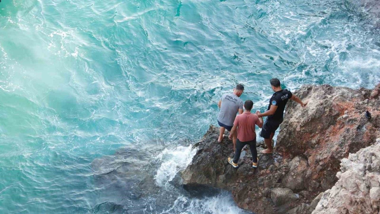 İhbar üzerine olay yerine gelen Antalya Emniyet Müdürlüğü Asayiş Şube Müdürlüğü Devriye Ekipler Amirliği’ne bağlı ekip genç kadın ile birlikte bölgede Haydar S.’yi aramaya başladı. Eşi ile uygulama üzerinden yaptığı kısa görüntülü görüşmeden genç adamın kayalık alanda olduğunun belirlenmesinin ardından polis ekipleri bölgede arama yaptı. Eşi ile yaptığı son görüşmenin ardından Haydar S. aramalara cevap vermedi. Farklı noktalarda ekiplerin Haydar S.’yi araması sırasında bir noktada cep telefonunun sesi duyuldu. Sesin yaklaşık 40 metrelik falezlerin alt kısmından geldiğini belirleyen polis ekibi arama çalışmasını bu yönde sürdürdü.
