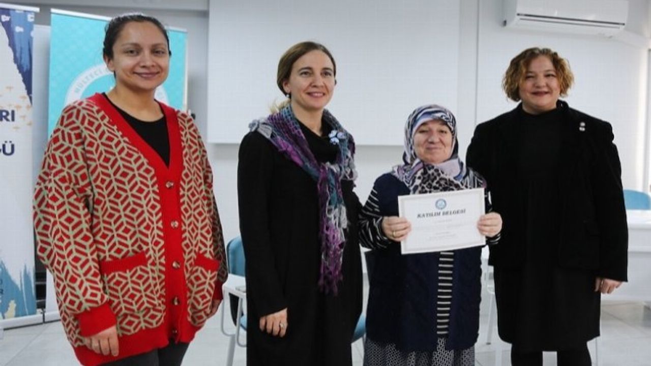 Yapılan son oturumda atölyenin değerlendirilmesi yapılarak Büyükşehir Belediyesi Sosyal Hizmetler Dairesi Başkan Hale Kargın’ın da katıldığı törenle 10 kadına katılım belgesi verildi.