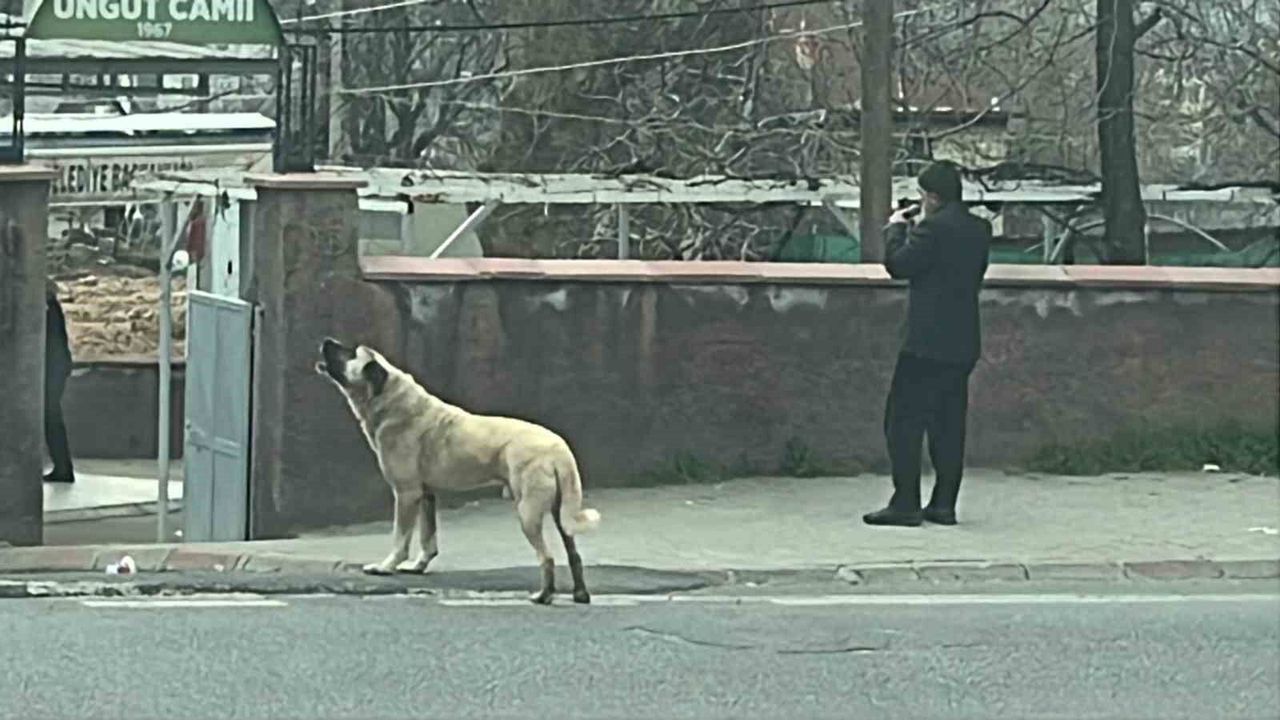 Kahramanmaraş'ta cami görevlisinin dışarıda mikrofonla ezan okuduğu sırada bir köpeğin ezanla birlikte uluması dikkat çekti.