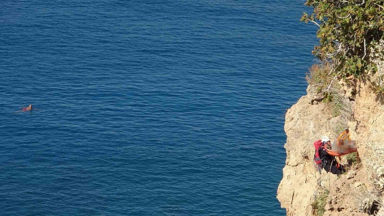 Antalya’da dört çocuk babası 44 yaşındaki adam falezlerdeki kayalık alanda ölü bulundu. Ölüm haberini duyan kardeşinin "abim ölmüş" feryatları yürekleri yakarken, cenaze 25 metre yükseklikten 2 saatlik operasyonla alındı. Operasyonu yüzerek açıldıkları denizden izleyenler ise deniz polisi ve sahil güvenlik ekiplerince uyarıldı.