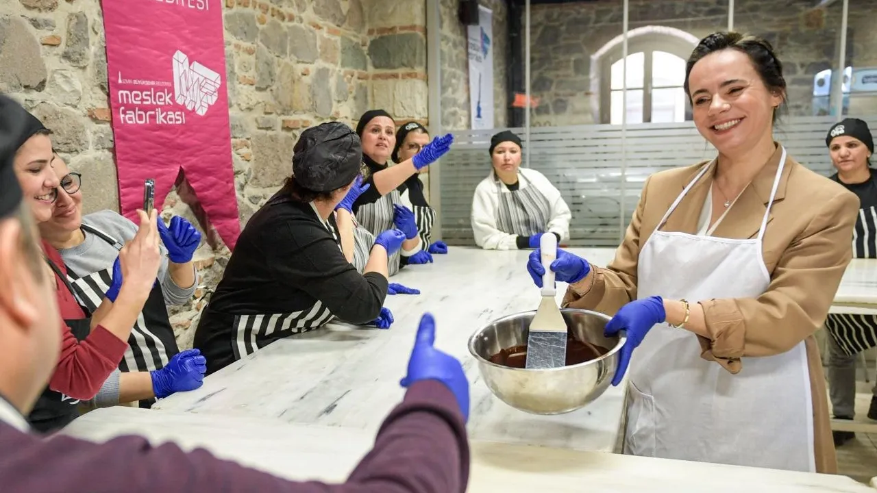 İzmir Büyükşehir Belediyesi Meslek Fabrikası’nın sağır ve işitme engellilere yönelik açtığı pastacı çıraklığı kursuna İzmir Büyükşehir Belediye Başkanı Dr. Cemil Tugay’ın eşi Öznur Tugay da katıldı. Öznur Tugay ve Fransız Şef Joelle Cam eşliğinde kursiyerler, işaret dili çevirmenleri eşliğinde pastacılığın inceliklerini öğrendi.İZMİR (İGFA) - İzmir’de faaliyet gösteren İzmir Sağırları Koruma ve Kalkındırma Derneği, Karşıyaka Sağırlar Derneği ve Bornova Sessizler Derneği üyeleri, İzmir Büyükşehir Belediyesi Meslek Fabrikası’nda sağır ve işitme engellilere yönelik açılan pastacı çırağı kursuna başladı.