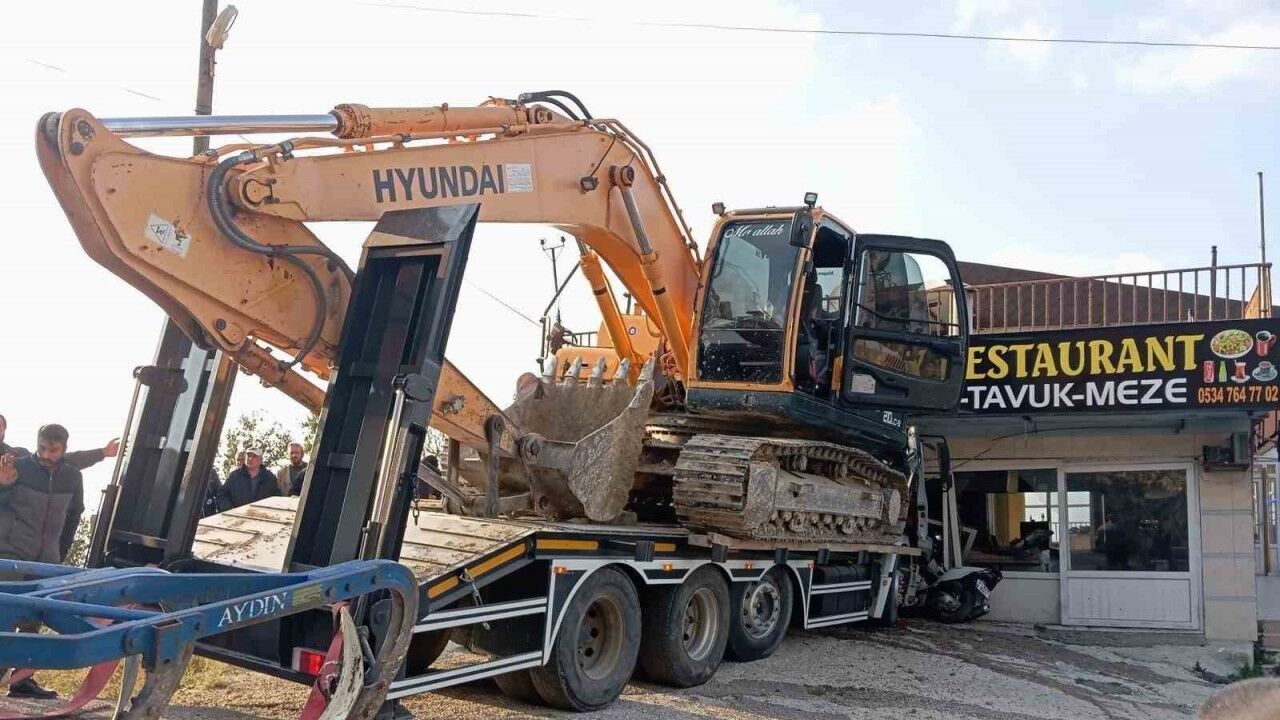 Hatay’da freni patlayarak sürücüsünün kontrolünden çıkan iş makinası yüklü tır, iş yerine daldı. Kazada araçta sıkışan tır sürücüsünü itfaiye ekipleri kurtardı.