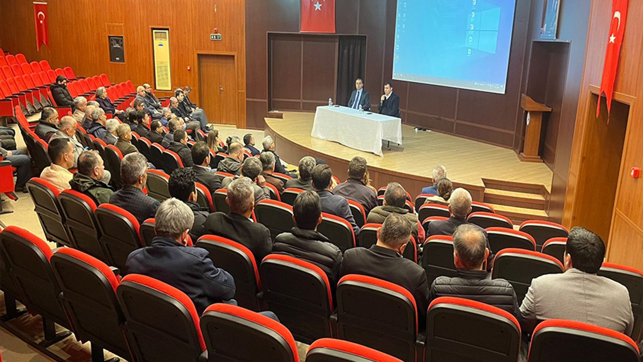 Belediye Kültür Merkezinde Kaymakam Orhan Altun başkanlığında düzenlenen toplantıya, Belediye Başkanı Mehmet Ali Yılmaz, Kurum müdürleri ve 53 mahalle muhtarı katıldı.