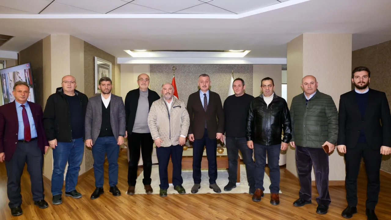 Gebze Trabzonlular Derneği Başkanı Kemal Koçyiğit ve dernek yönetimi, Kocaeli Büyükşehir Belediye Başkanı Tahir Büyükakın’ı makamında ziyaret etti.KOCAELİ (İGFA) - Ziyarete Dernek Başkanı Kemal Koçyiğit’in yanı sıra Başkan Yardımcısı Yakup Uzun, Akif Bal ve Yusuf Özkay, Gençlik Kolları Başkanı Mehmet Altınalan ile yönetim kurulu üyeleri katıldı. Başkan Tahir Büyükakın, heyeti sıcak bir şekilde karşıladı ve ziyaretten duyduğu memnuniyeti dile getirdi.