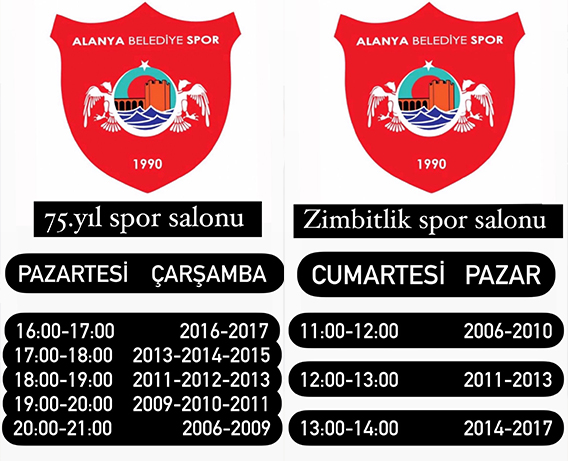 Yaş kategorilerine göre eğitim alan öğrenciler cumartesi-pazar Zimbitlik'te, haftaiçi pazartesi-çarşamba günleri 75. Yıl Spor Salonu'nda çalışmalarını sürdürüyorlar.