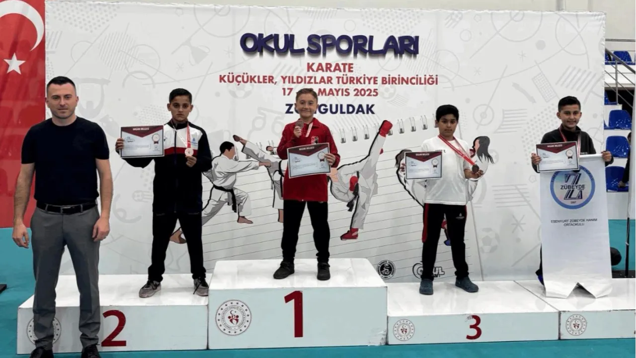 Balıkesir Büyükşehir Belediyesi Manyas Gençlik ve Spor Merkezi öğrencisi, Özen Egemen Efe Er, karate branşında gösterdiği üstün başarılarla il sınırlarını aşarak Türkiye’nin gururu oldu.BALIKESİR (İGFA) - Balıkesir Büyükşehir Belediyesi, genç yeteneklerin gelişimini desteklemek ve ülke genelinde başarılar kazanmalarını sağlamak adına spora çok yönlü yatırımlar yaparak, geleceğin şampiyon sporcularının yetişmesine öncülük etmeyi sürdürüyor. Bu vizyonun en parlak örneklerinden biri olan Balıkesir Büyükşehir Belediyesi Manyas Gençlik ve Spor Merkezi öğrencisi ve aynı zamanda Manyas Belediyespor’un lisanslı milli sporcusu Özen Egemen Efe Er, Zonguldak’ta düzenlenen 2024-2025 Okul Sporları Karate Türkiye Şampiyonası’nda Türkiye birincisi olarak kürsünün en üst basamağında yer aldı. Henüz 10 yaşında olmasına rağmen büyük bir başarı grafiği çizen Egemen Efe Er, yalnızca iki ay önce Kocaeli’de düzenlenen ve 61 il, 460 kulüp ile 4 bin sporcunun katıldığı 2025 Türkiye Karate Şampiyonası’nda da Türkiye ikinciliği elde ederek dikkatleri üzerine çekmişti.