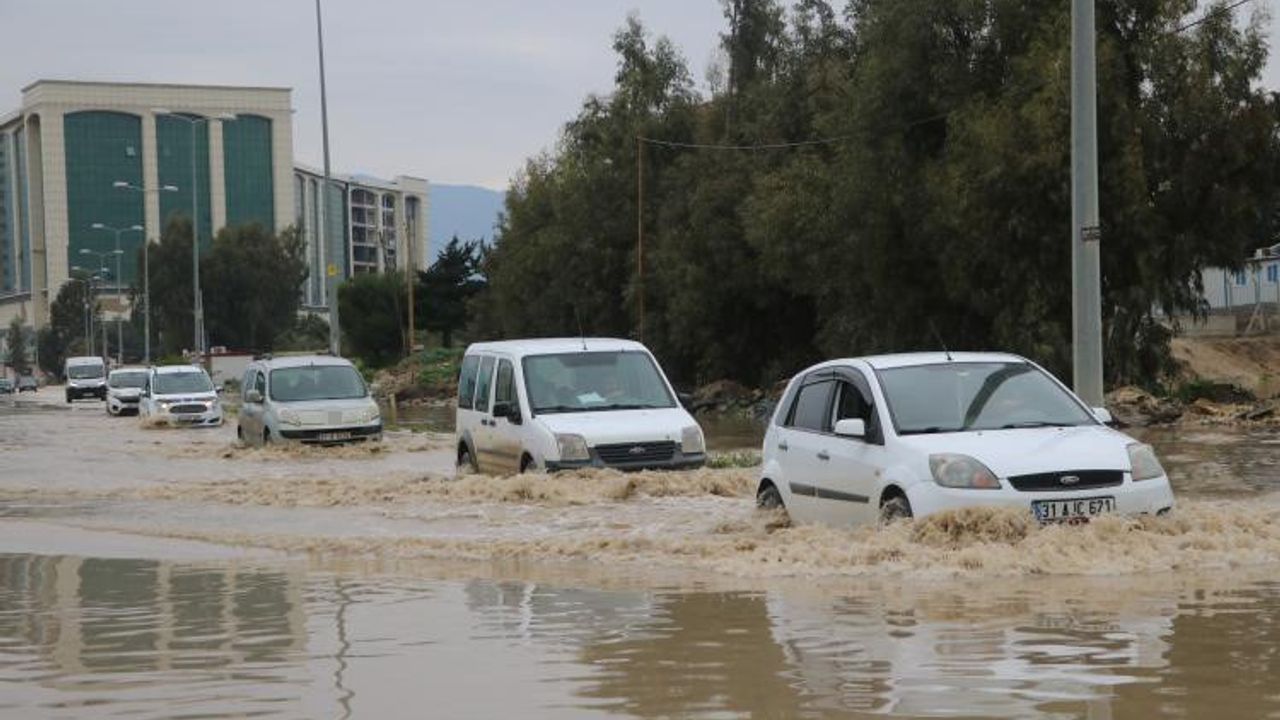 Hatay’ın Antakya ilçesinde etkili olan yağış sonrası göle dönen cadde sürücülere zor anlar yaşattı. Büyükşehir belediyesi ekipleri de su baskınlarının yaşandığı noktalarda tahliye işlemlerini sürdürüyor.