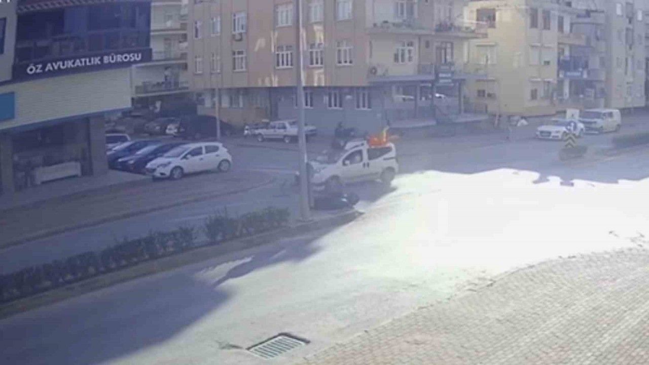 Antalya’da motosikletin hafif ticari araca çarpması sonucu meydana gelen trafik kazasında motosiklet sürücüsü ve yolcusu ölümden döndü. Kaza anları güvenlik kamerasına an be an yansıdı.