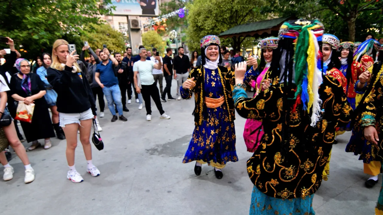 Kortejin ardından ekipler Suvari Caddesi üzerinden yürüyerek Ayfer Feray Açıkhava Tiyatrosu’na ulaştı. Etraftaki evlerden ve mekanlardan vatandaşlar da alkışlarla ve müzikle bu coşkuya ortak oldu. Açıkhava tiyatrosunda Anadolu’nun dört bir yanına ait halk oyunları sahnelendi. Tüm koltuklar dolarken izleyiciler, dansçıların enerjisine alkışlarıyla eşlik etti. Festival alanı gece boyunca davul zurna sesleriyle yankılandı.
