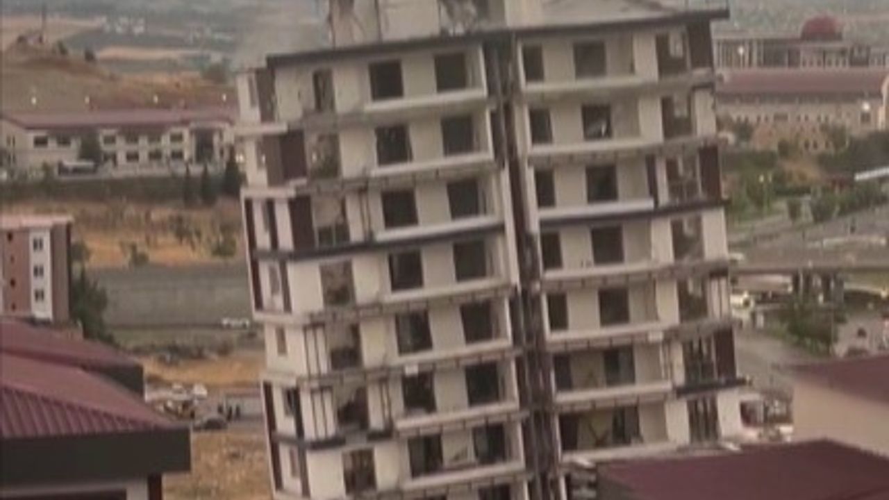 Kahramanmaraş depremleri sonrası hasarlı binalarda yıkımlar devam ediyor. Onikişubat ilçesindeki iki yurt binası hasar aldı. Binalardan biri, bir ay önce yıkılmıştı. Yıkım çalışmalarına başlanan diğer binanın önce yarısı sonra kalan yarısı ekipler tarafından kontrollü şekilde yıkıldı.
