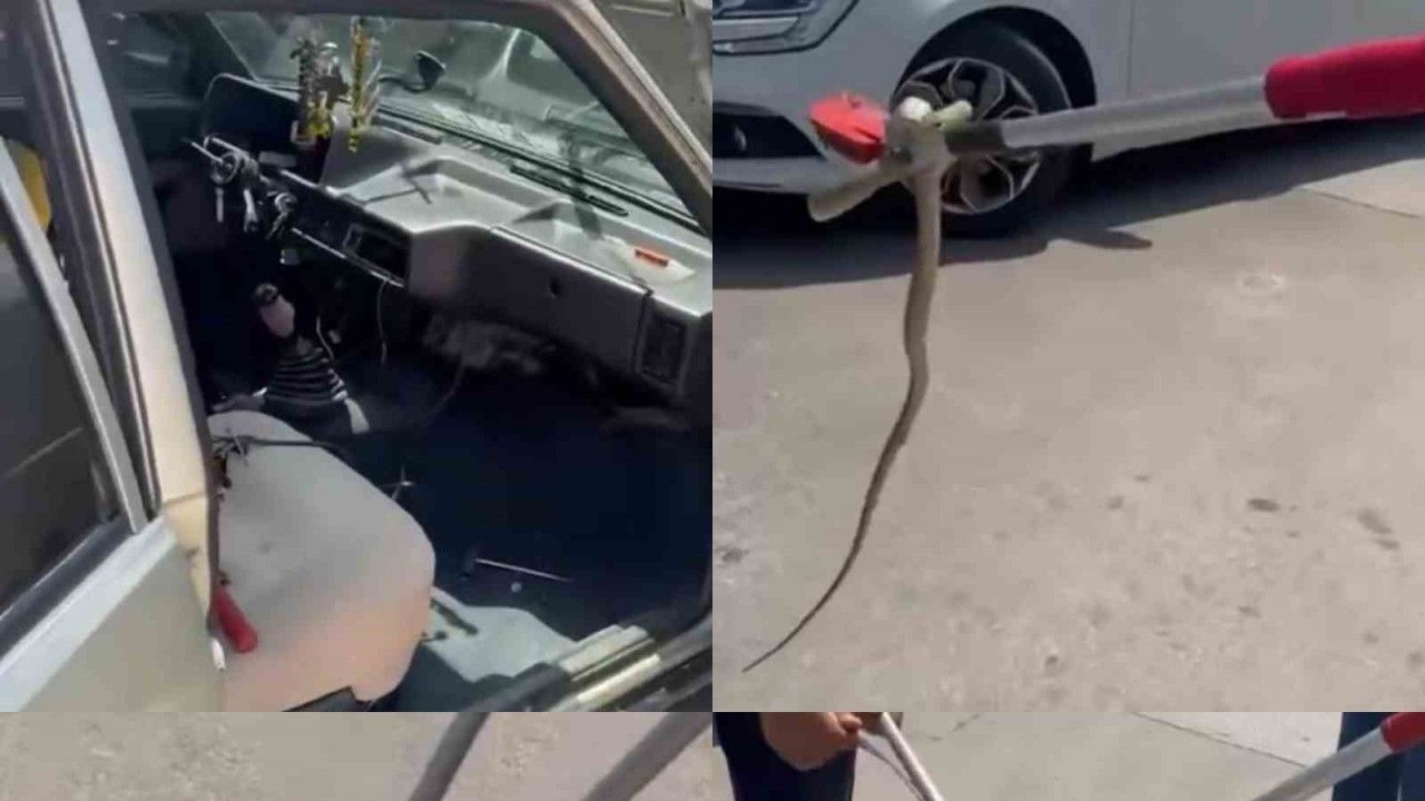 Olay, Erdemli Devlet Hastanesi otoparkında yaşandı. Alınan bilgiye göre, 45 plakalı otomobilde yılan olduğunu fark eden sahibi itfaiye ekiplerinden yardım istedi. Bunun üzerine bölgeye Mersin Büyükşehir Belediyesi İtfaiye ekipleri sevk edildi. Ekipler yılanı özel aparatla yakalayıp, torbaya koydu.