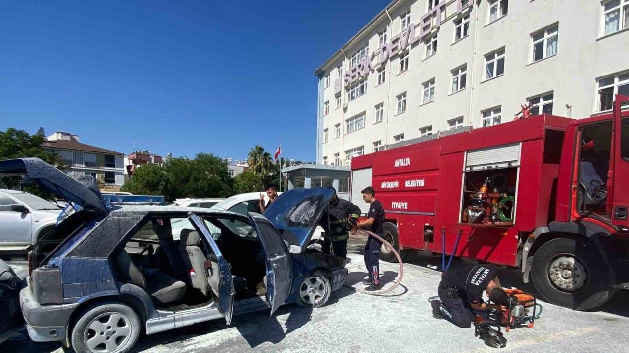 Antalya’nın Serik ilçesinde, devlet hastanesi otoparkında bir otomobilde çıkan yangın, paniğe neden oldu. Kısa sürede söndürülen yangında araç kullanılamaz hale geldi.