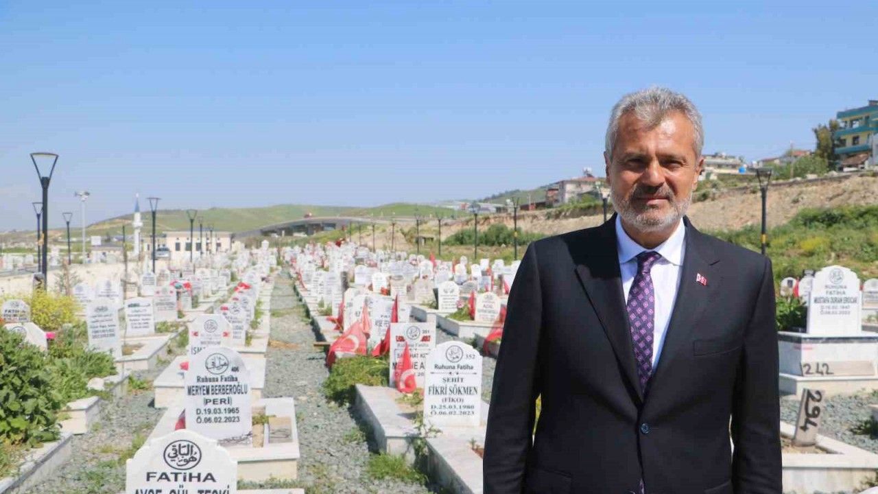 Hatay Büyükşehir Belediye Başkanı Mehmet Öntürk, ilk ziyaretini asrın felaketinde vefat eden vatandaşların kabirlerinin bulunduğu Deprem Şehitliğine gerçekleştirdi.