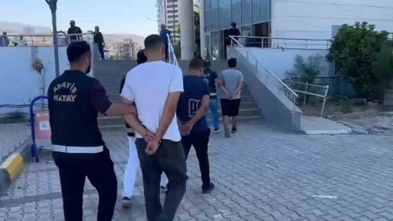 Hatay Emniyet Müdürlüğü görevlilerince aranan şahısların yakalanmasına yönelik yapılan çalışmada; kasten yaralama-tehdit-hakaret olayının şüphelisi A.K., uyuşturucu madde kabul etmek, bulundurmak ve kullanmak suçundan 2 yıl kesinleşmiş hapis cezasıyla aranan M.A.A., evden hırsızlık suçundan 4 yıl 2 ay hapis cezasıyla aranan M.K., özel hayata ilişkin görüntü ve sesleri ifşa etmek suçundan 2 yıl 11 ay hapis cezasıyla aranan E.Ü. ile askeri ceza kanuna muhalefet suçundan 2 ay 15 gün hapis cezasıyla aranan E.A. adlı şahıslar yakalanarak gözaltına alındı.