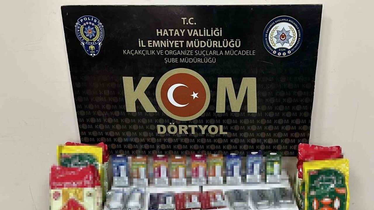 Hatay Emniyet Müdürlüğü görevlilerince kaçakçılık olaylarına yönelik yapılan çalışmalarda Payas Çağlalık Mahallesi’nde bulunan bir iş yeri ve ikamette, Dörtyol Numune Evler Mahallesi’nde durdurulan R.Ç. adlı şahsın yapılan üst aramasında; gümrük kaçağı 12 bin 400 adet makaron, bin 170 paket sigara, 980 adet doldurulmuş makaron, 9 adet elektronik sigara likiti, 14 adet elektronik sigara, 100 adet puro, 3 kilogram kaçak çay, 400 gram nargile tütünü ele geçirildi. Olayla ilgili olarak R.Ç., F.A. ve M.S. hakkında adli işlem yapıldı.